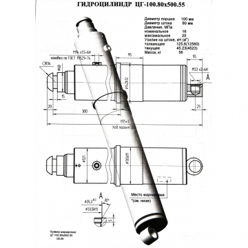 ЦГ-100.80х500.55 Гидроцилиндр опоры (Ц22А.00)