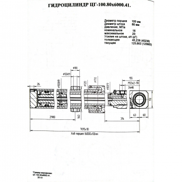 ЦГ-100.80х6000.41 Гидроцилиндр выдвижения секции стрелы (КС-4572.63.900-2А)