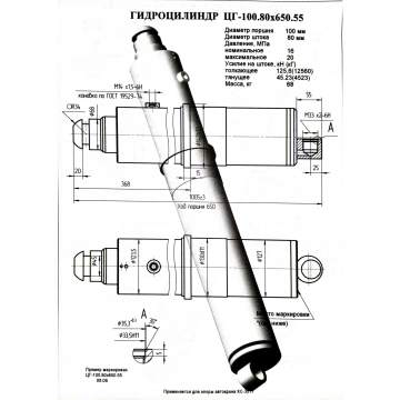 ЦГ-100.80х650.55 Гидроцилиндр опоры