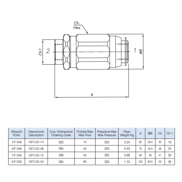 VST-UD-004.065.OOO Дроссель цилиндрический с обратным клапаном трубного монтажа VRF 3/4"