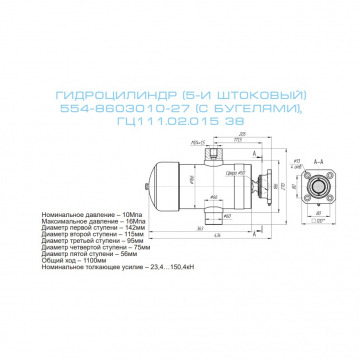 ГЦТ 554-8603010-27 ШАР-ЦАПФЫ телескопический гидроцилиндр ЗИЛ 5-ти шток (ГЦТ 1-5-14-1100)