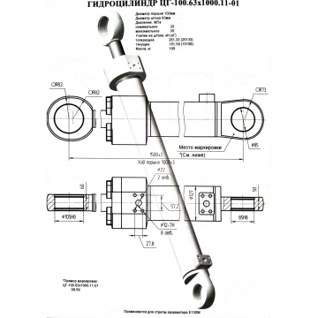Гидроцилиндр стрелы ЦГ-100.63х1000.11-01 (Тверь)