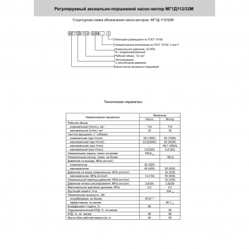 Насос – моторы аксиально-поршневые регулируемые типа МГ1Д 112/32М используются в объемных гидроприводах машин и агрегатов в режимах регулируемого насоса или гидромотора.