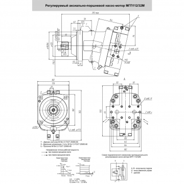 Насос – моторы аксиально-поршневые регулируемые типа МГП 112/32М используются в объемных гидроприводах машин и агрегатов в режимах регулируемого насоса или гидромотора.