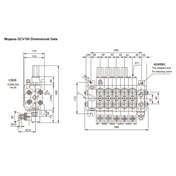 Гидравлический распределитель DCV 100 имеет не моноблочную, а секционную конструкцию. Количество секций может быть от 1й до 8ми.