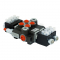 Моноблочный гидрораспределитель серии Z50 с электромагнитным управлением предназначен для изменения направления потока, ограничения давления рабочей жидкости в гидролиниях, разгрузки насоса в нейтральной позиции золотников. Конструктивно данный тип распределителей выполнен в литом монолитном корпусе, с предохранительным клапаном, от 1 до 6 рабочих секций, с возможным применением золотников типа A или D. Номинальный расход данного типа гидравлического распределителя - 50 л/мин.