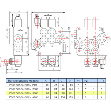 Распределитель 3Р80-1L13А8A1 GKZ1 – один из основных элементов гидравлической системы, который позволяет управлять потоком рабочей жидкости, осуществляя работу исполнительных механизмов на гидроприводе. Конструкция гидрораспределителя 3Р80-1L13А8A1 GKZ1 представляет собой три объединенных модуля Р80 с первой секцией - плавающей, второй - с фиксацией и третьей - без фиксации положения ручки. Данная модификация 3Р80 позиционируется как готовый комплект для установки и настройки на перечисленные модели спецтехники указанного производителя.