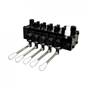 Гидрораспределитель золотниковый, 5 секционный с ручным управлением служит для управления гидроцилиндрами механизмов выдвижения опор, вывешивания крана и блокировки задней подвески шасси.