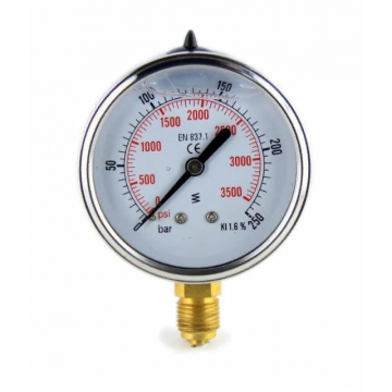 Манометр гидравлический на 0-160 бар диаметр 63 мм, резьба1/4" BSP, радиальное присоединение (снизу)