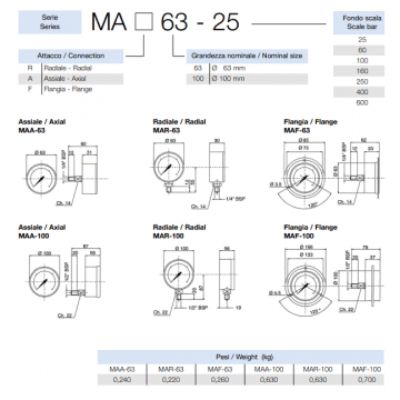 МАНОМЕТР ГИДРАВЛИЧЕСКИЙ 63 ММ, 0 - 250 БАР, РАДИАЛЬНОЕ ПРИСОЕДИНЕНИЕ (СНИЗУ)
