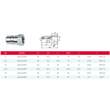 Муфта серии ISO B (LSQ-S2) ISO 7241-B закрытого типа, гидравлическое быстроразъемное соединение (сталь).