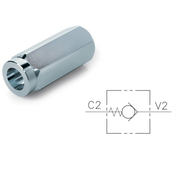 Обратный клапан позволяет потоку двигаться свободно из порта V2 в порт C2 и блокирует его в противоположном направлении.