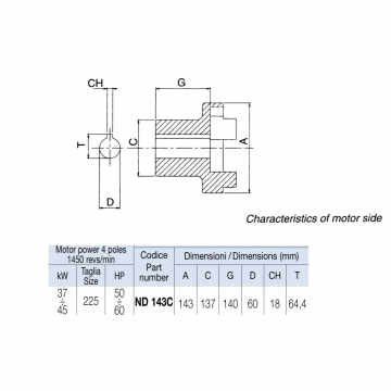 Полумуфта серии ND и NS —это элемент, предназначенный для установки на вал шестеренного насоса или на вал электродвигателя, например, серии АИР. Исполнения ND143C предназначено для установки на вал электродвигателя с диаметром вала 60 мм