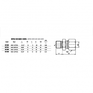 Штуцер соеденительный с гайкой и наружной резьбой NDO 1/2х12L (R1130), G1/2"-G1/2"