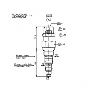 Вставной патронный клапан 001.620.OXO настройка пружины 30:220 BAR, 4:1