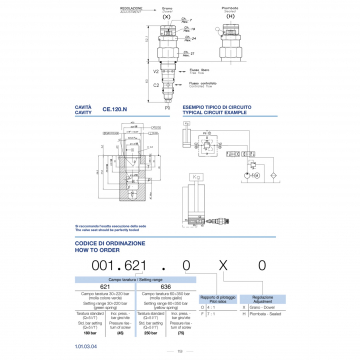 Вставной патронный клапан 001.636.OHO настройка пружины 60:350 BAR, 4:1, с закрытым центром