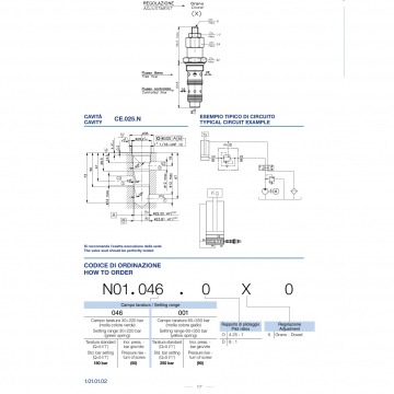 Вставной патронный клапан N01.001.OXO настройка пружины 60:350 BAR, 4.25:1